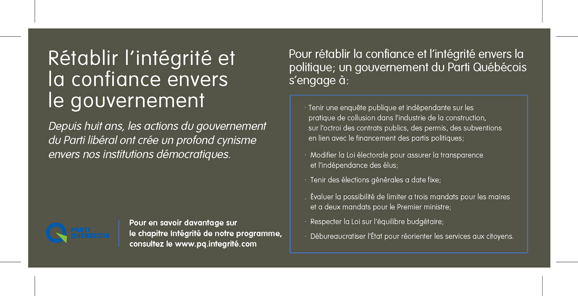 Carton "flyer" pour promotion du PQ campagne 2012