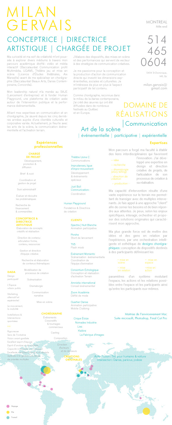 Créer le concept, la mise en page du cv de la Chorégraphe, danseure, et spécialiste en évènements spéciaux incluant de la danse, chorégraphie et stunt artistiques.