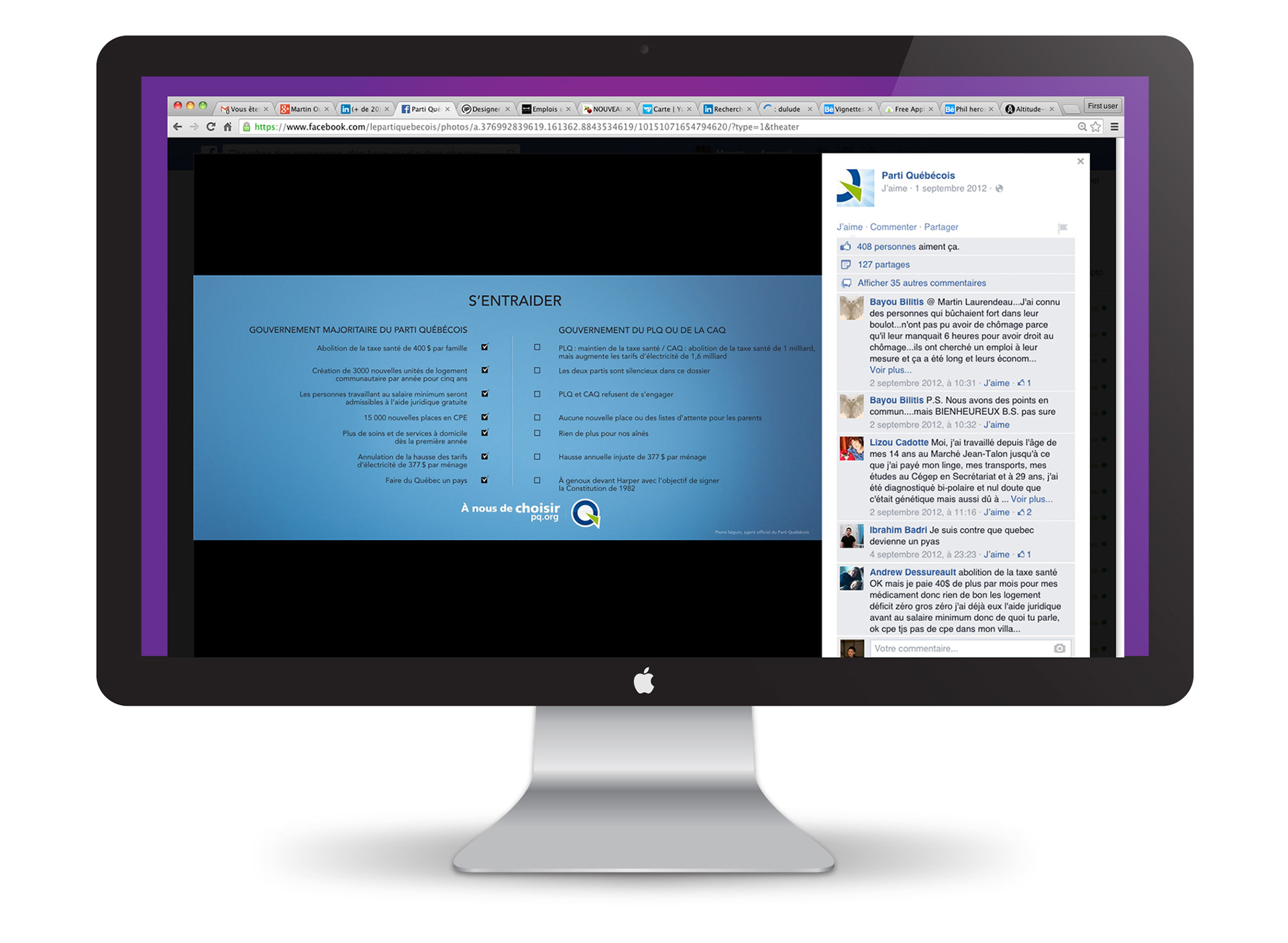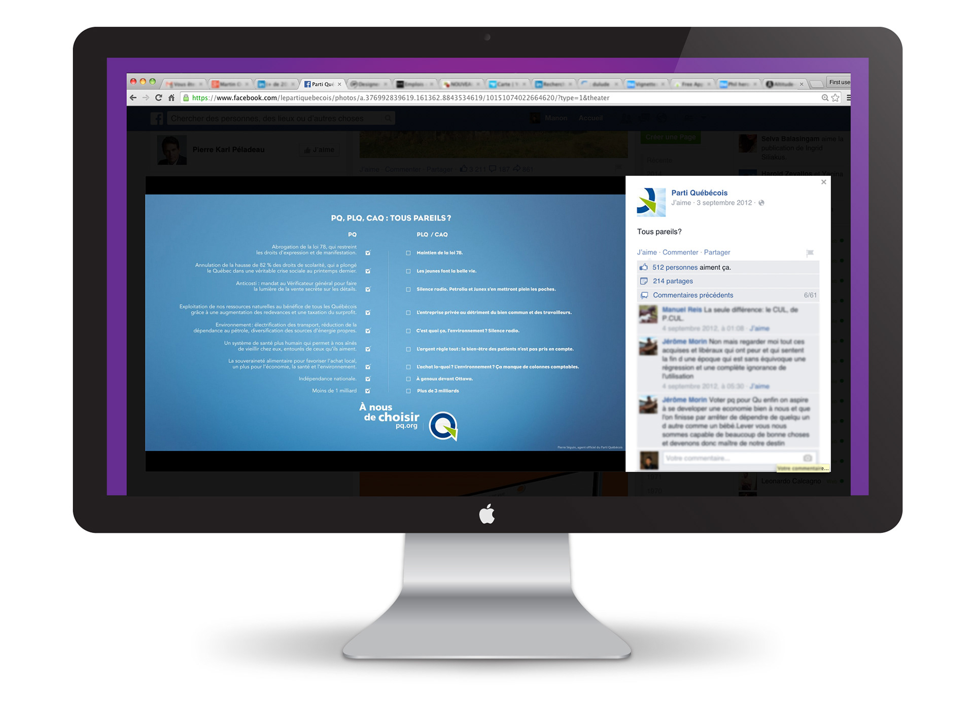 Vignettes avec citations, spine durant la campagne du PQ